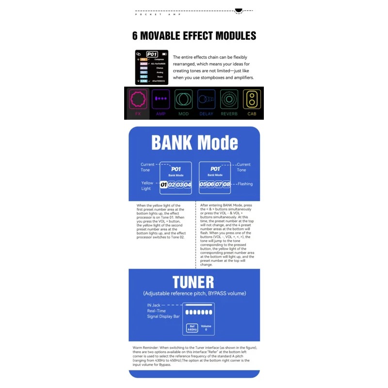 Take your tone anywhere with the M-VAVE Pocket AMP, the ultimate portable solution for guitarists and bassists who want professional sound without bulky gear. Whether you’re practicing silently with headphones, recording at home, or jamming on the go, this mini amp delivers big tone in a pocket-sized format.