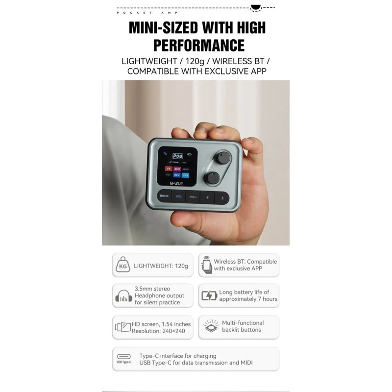 Forget about lugging heavy gear. With the M-VAVE Pocket AMP, you can enjoy professional amp tones anywhere — perfect for bedroom practice, busking, or recording straight into your DAW. This is the must-have tool for guitarists seeking convenience without sacrificing tone.